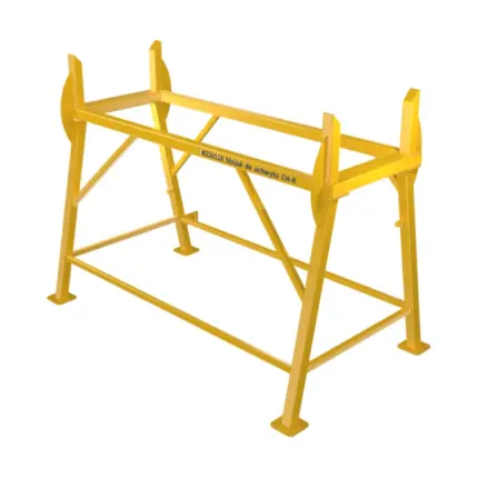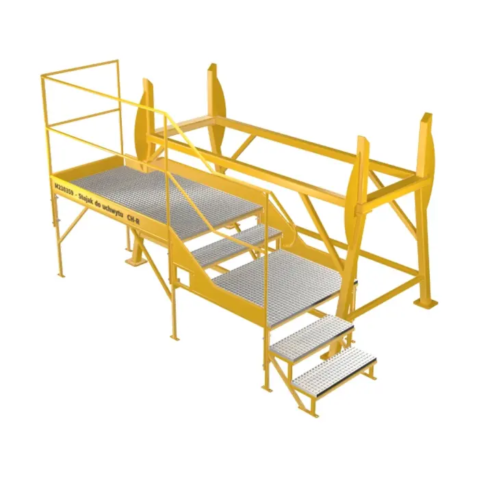 Stalak s servisnom platformom za CH‑R hvataljku omogućuje kontrolirano prihvaćanje i siguran transport koluta lima u čeličanama, servisima rezanja, skladištima i logističkim pogonima. Konstrukcija je projektirana za česte radne cikluse uz minimalno trošenje kontaktnih površina i stabilno vođenje tereta tijekom podizanja i odlaganja.